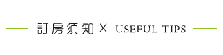 | ※ | 延期住宿:請於住宿7天前告知,可於期限內擇期住宿,或退回訂金一半。 |